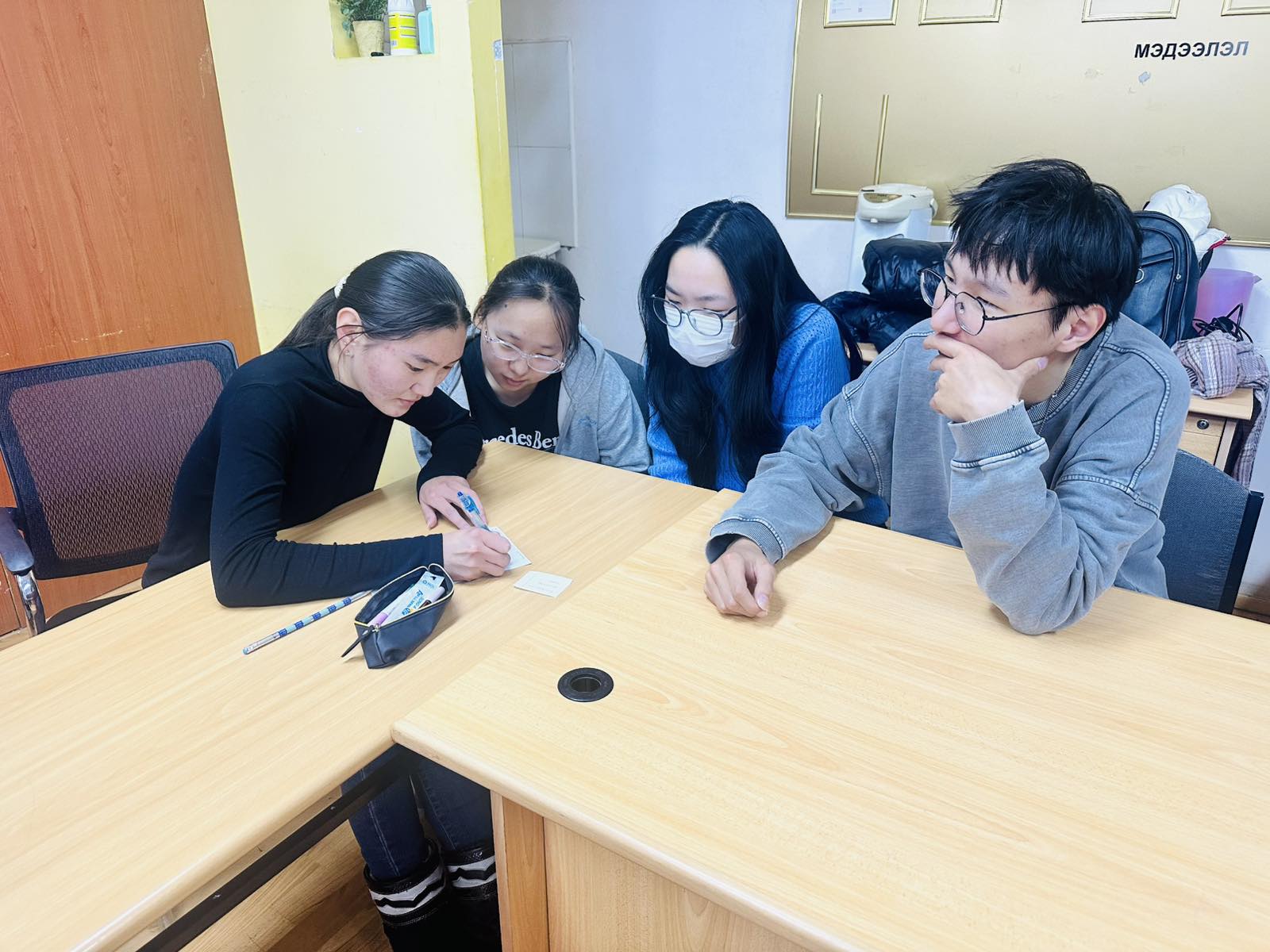 2. 1-4-р курсын оюутнуудын хамтын үйл ажиллагааг дэмжих зорилгоор хооронд нь хольж, баг болгон буухиа тэмцээнийг зохион байгуулж, оноогоор дүгнэн, түрүүлсэн эрдэмтэн багш нарын номын дээжис болон ШУТИС-ийн тэмдэглэлийн дэвтэр, бал өгсөн.