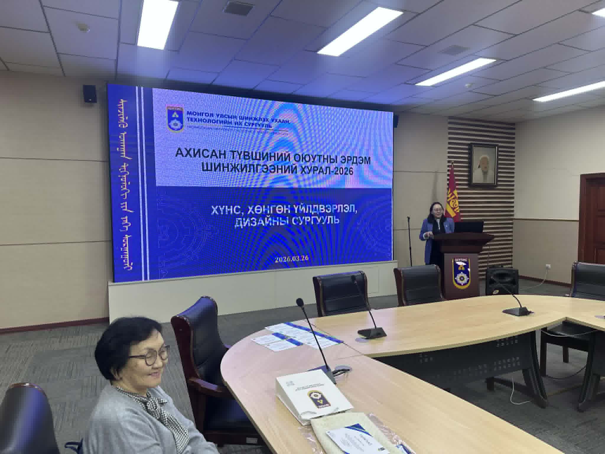 ХХҮДС -ийн ахисан түвшний (магистрант, докторант) оюутнуудын дунд уламжлал болгон зохион байгуулдаг “Эрдэм шинжилгээний бага хурал – 2026” ШУТИС-ийн Төв номын сангийн 604 тоот танхимд 2026 оны 03 дугаар сарын 26-ны өдөр амжилттай зохион байгуулагдлаа.