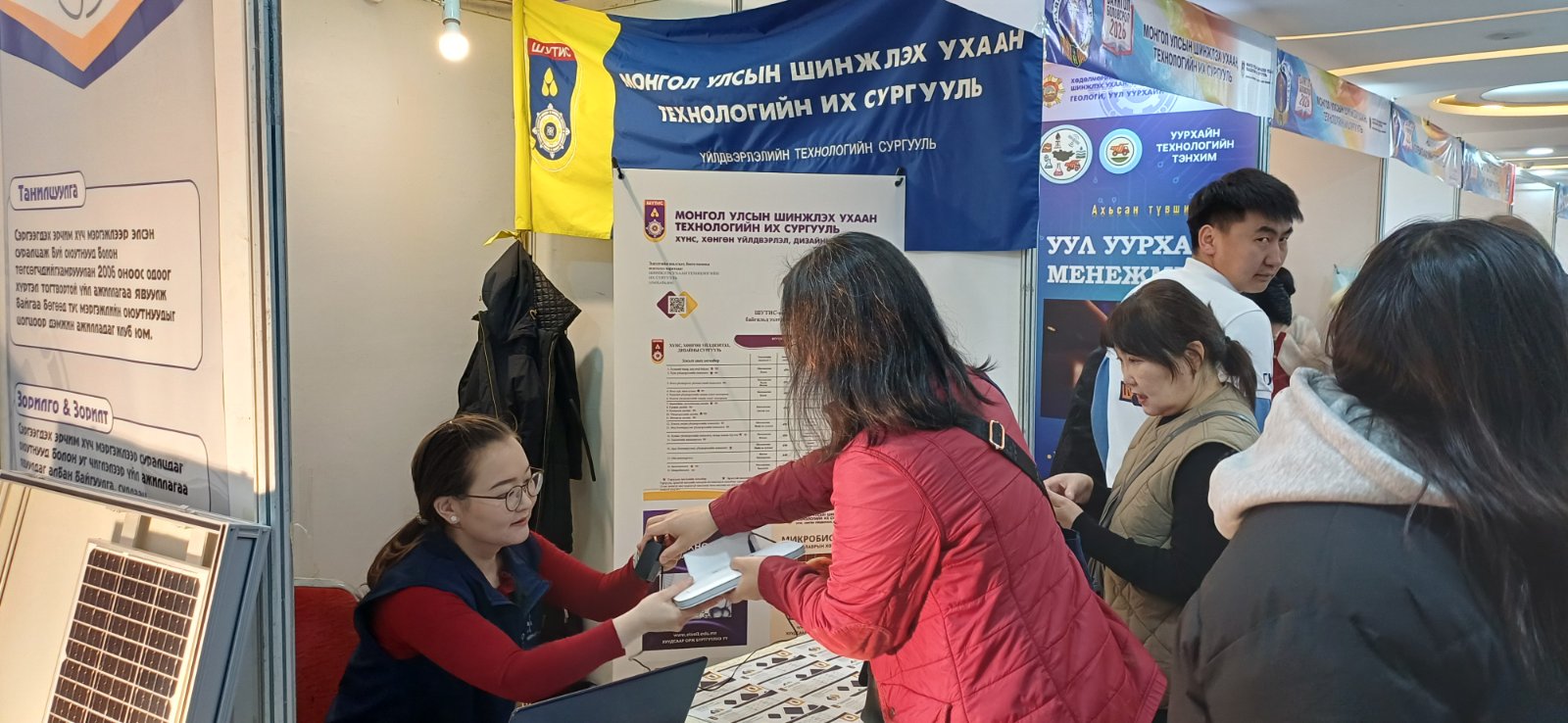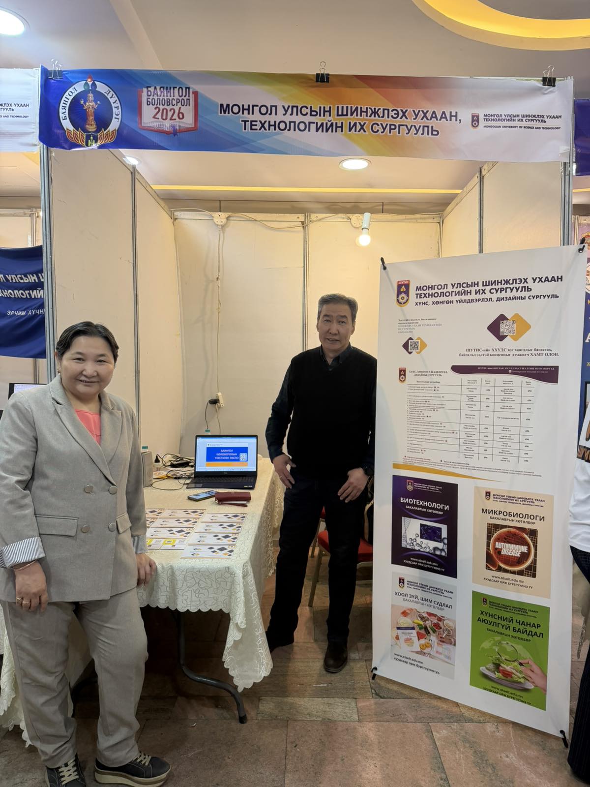 Баянгол дүүргийн үзэсгэлэн экспо 2026 оны 4 сарын 4-нд МҮЭСТӨ-нд зохион байгуулагдаж ХХҮДС-ийн Биотехнологи, шим судлалын тэнхмийн эрхлэгч С.Дэлгэрмаа, Хүнсний инженерчлэлийн тэнхмийн ахлах багш Н.Чимэдрэгзэн, сургалтын мастер Л.Энхцэцэг нар оролцон ЕБС төгсөгчдөд сургуулийнхаа мэргэжил хөтөлбөрийг танилцууллаа.